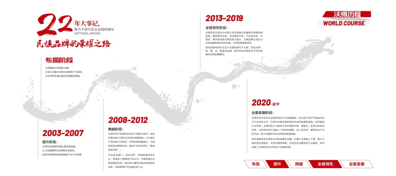 沃得農(nóng)機隸屬于中國民營企業(yè)500強之一的江蘇沃得集團,占地面積3000余畝,員工8000余人,2016年實現(xiàn)銷售70億元人民幣,是一家集研發(fā)、生產(chǎn)、銷售、服務于一體的大型現(xiàn)代化農(nóng)機裝備制造企業(yè)。沃得農(nóng)機立足水田,致力于現(xiàn)代農(nóng)業(yè)全程機械化,歷經(jīng)近30年發(fā)展,產(chǎn)品形成以耕-種-田間管理-收獲-秸稈綜合利用-糧食后處理全系列產(chǎn)品線。依托優(yōu)質(zhì)的產(chǎn)品和誠信的服務,公司產(chǎn)品暢銷全國28個省市自治區(qū),出口至世界38個國家和地區(qū)。